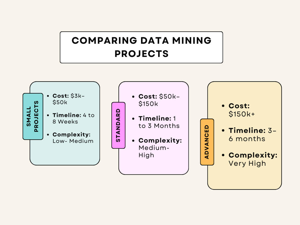 • Boutique consultancies: Mid five-figure to low six-figure projects involving full-fledged data mining (data integration, modeling, deployment).